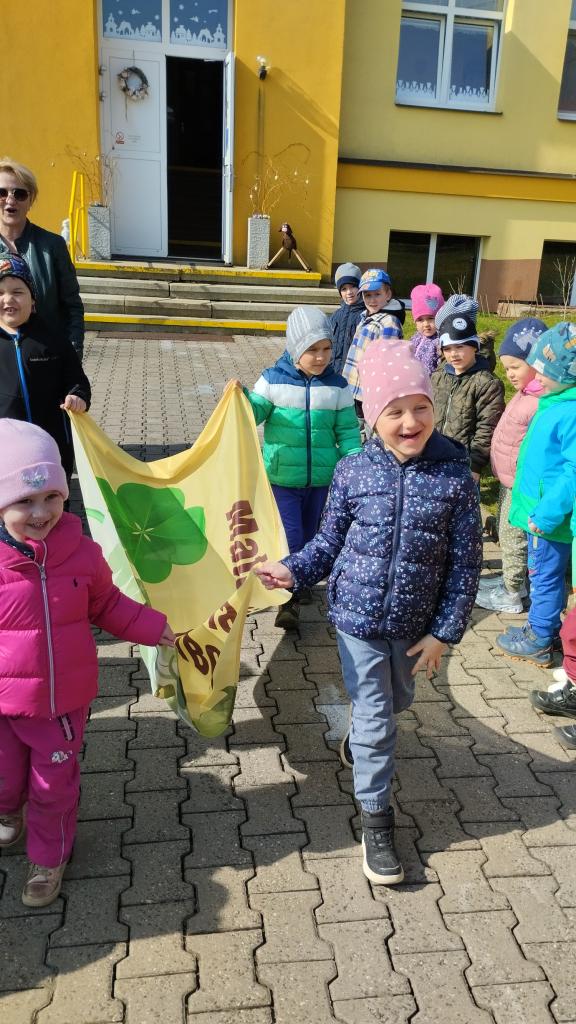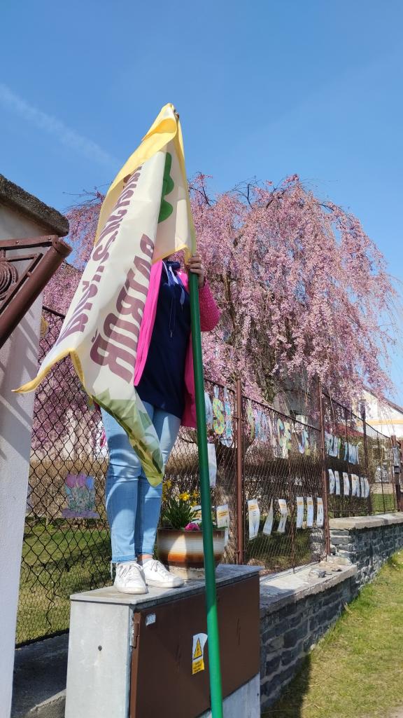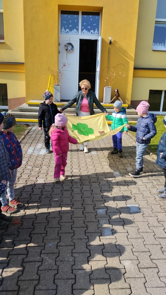 S dětmi jsme pověsili před školku novou vlajku.