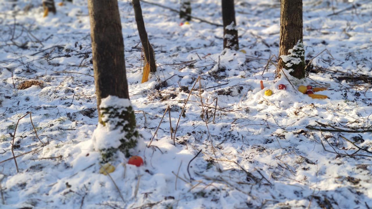 Byli jsme v lese dát zvířátkům dobroty, které jim děti přinesly.