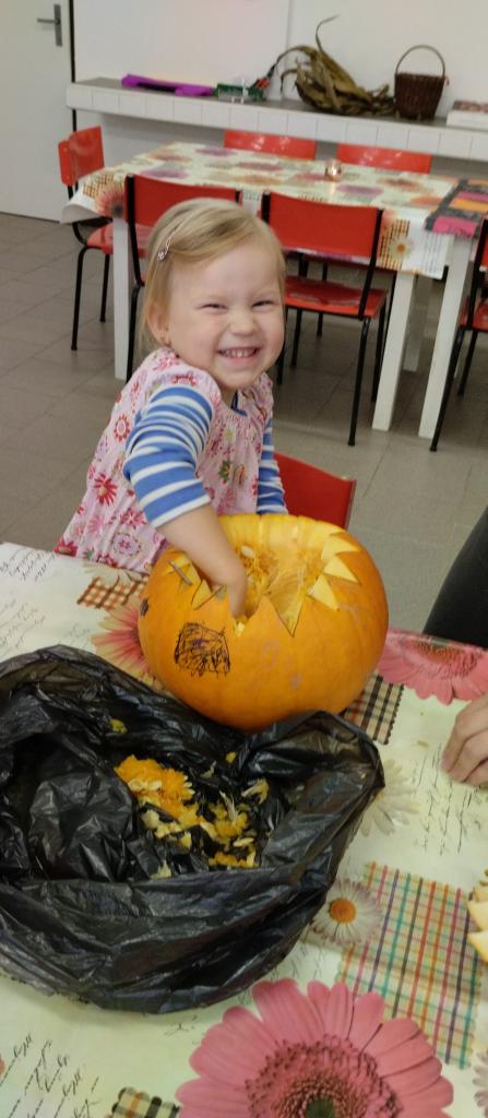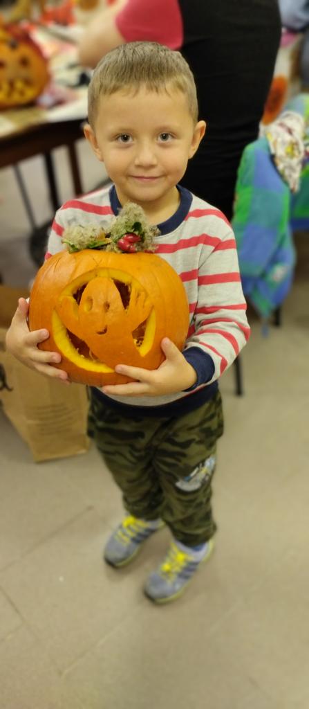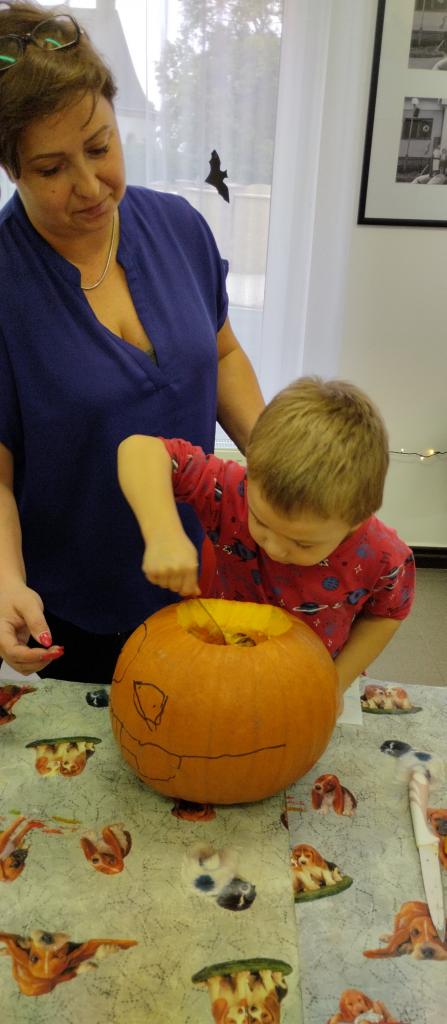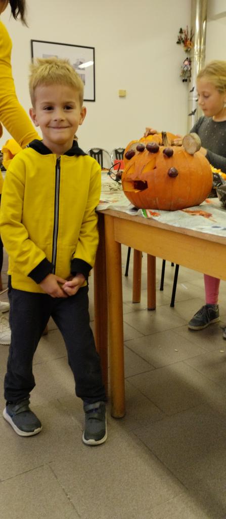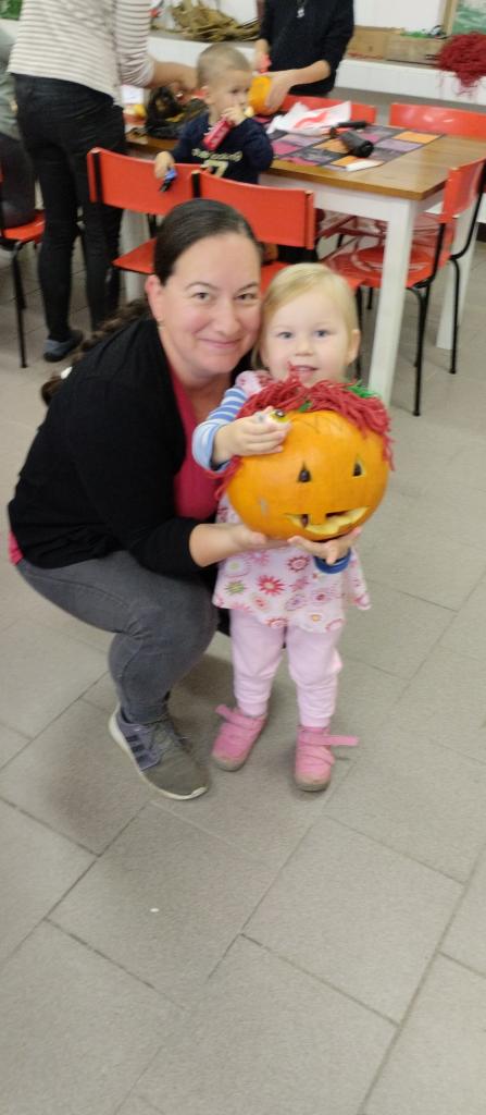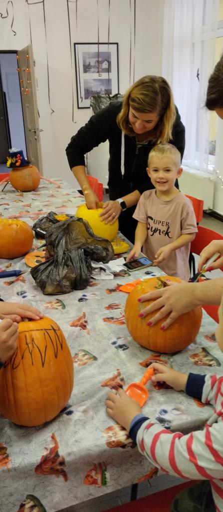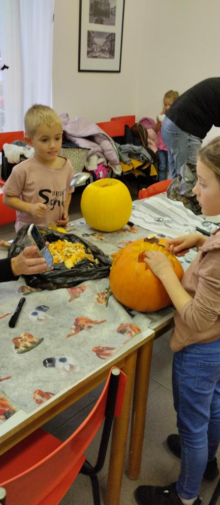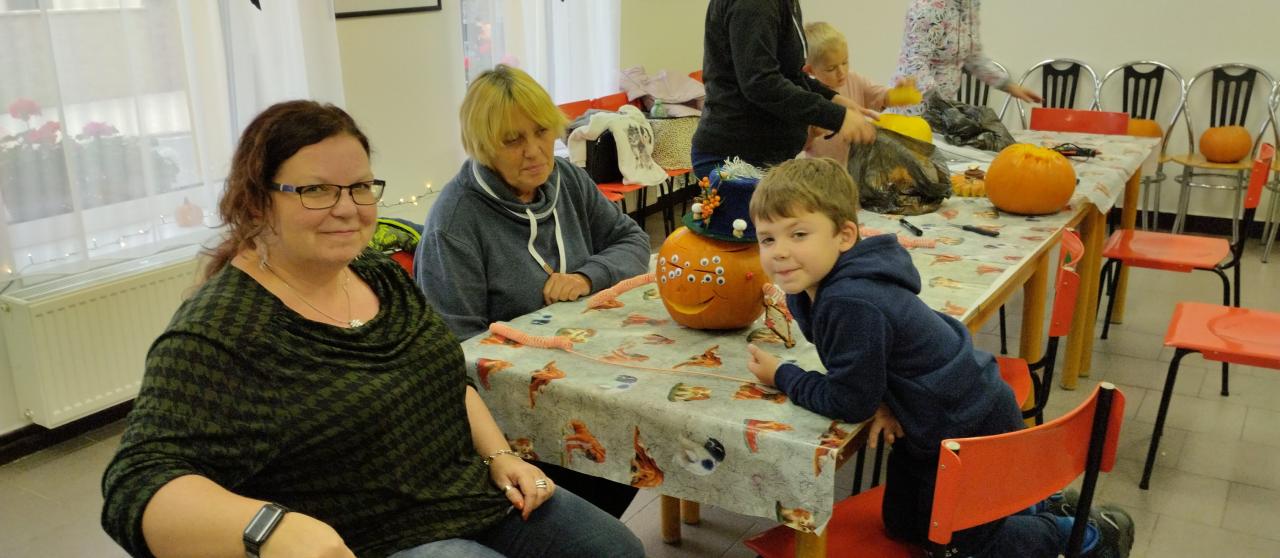 Společné tvoření rodičů a dětí s halloweenskou tématikou.