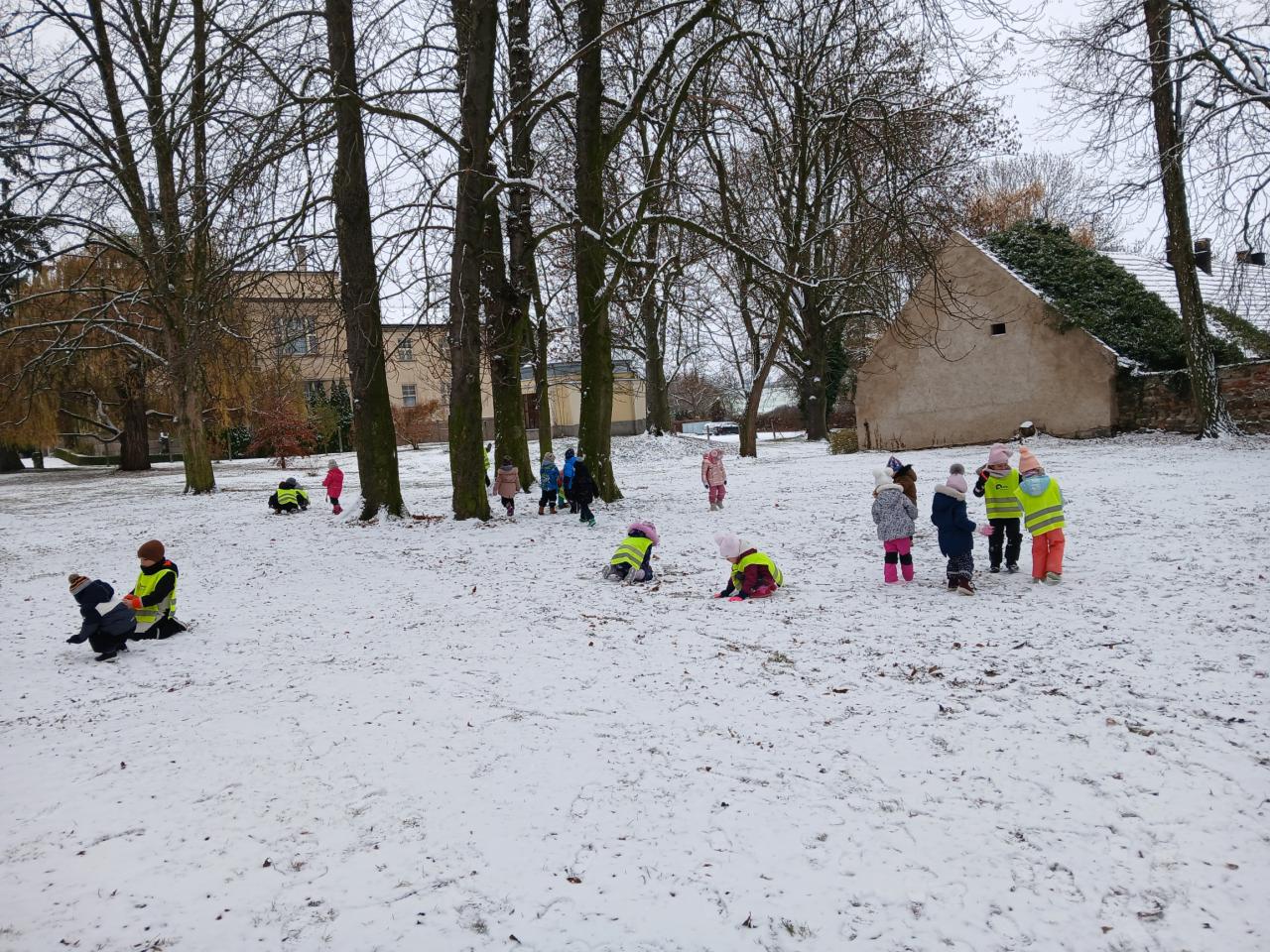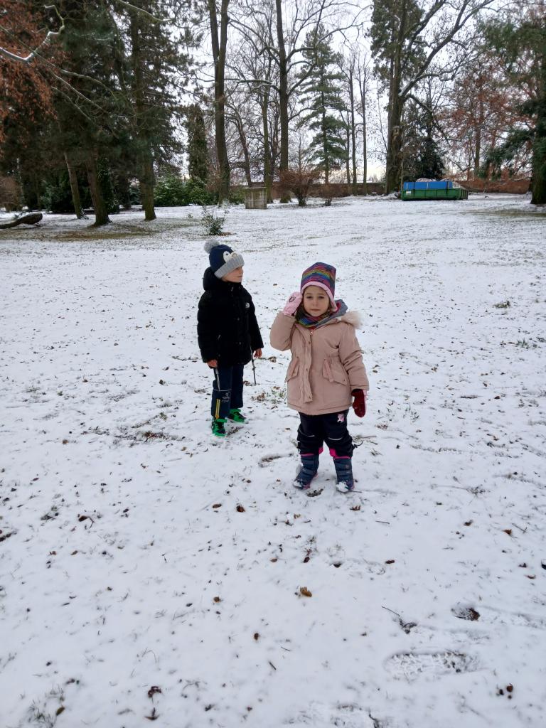 Hrátky v zámecké zahradě na prvním sněhu